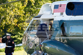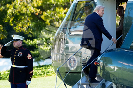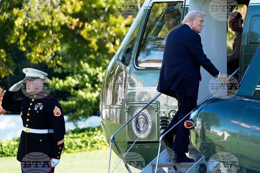 President Donald Trump boards Marine One upon departing from the South Lawn of the White House, Friday, Oct. 17, 2025, in Washington. (AP Photo/Alex Brandon)