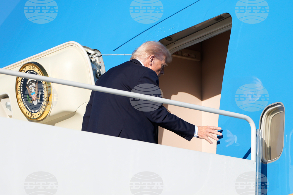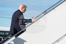 President Donald Trump boards Air Force One, Friday, Oct. 17, 2025, at Joint Base Andrews, Md., for a trip to Florida. (AP Photo/Mark Schiefelbein)