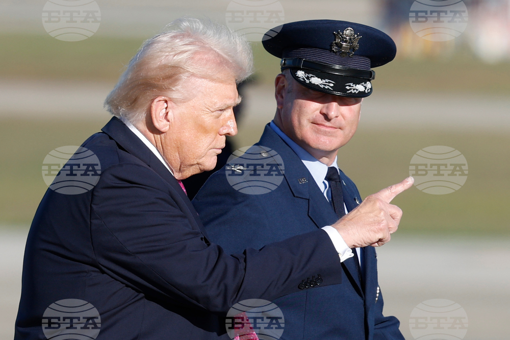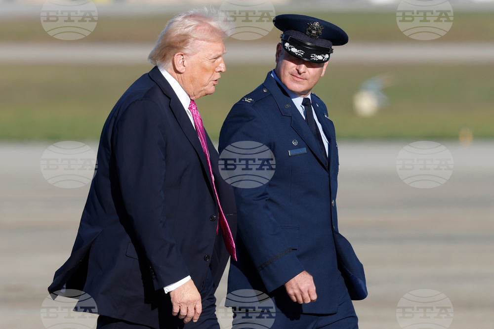 President Donald Trump, left, is escorted by Air Force Col. Christopher M. Robinson, Commander, 89th Airlift Wing, right, as he walk from Marine One to Air Force One, at Joint Base Andrews, Md., Friday, Oct. 17, 2025. (AP Photo/Luis M. Alvarez)