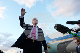 President Donald Trump arrives on Air Force One, Friday, Oct. 17, 2025, at Palm Beach International Airport in West Palm Beach, Fla. (AP Photo/Mark Schiefelbein)