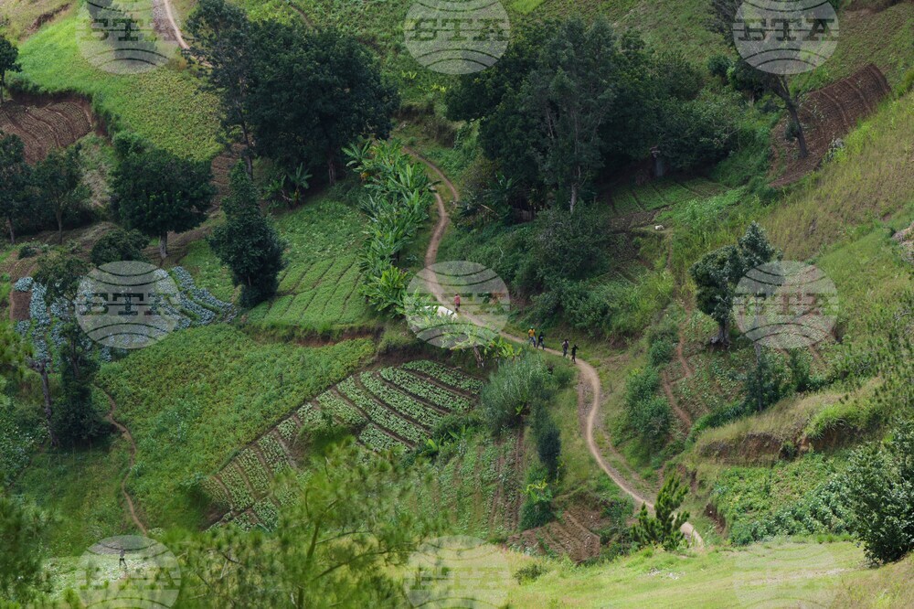 People walk along of a road in the Kenscoff neighborhood of Port-au-Prince, Haiti, Friday, Oct. 17, 2025. (AP Photo/Odelyn Joseph)