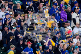 Seattle Mariners fans cheer after Game 5 of baseball's American League Championship Series against the Toronto Blue Jays, Friday, Oct. 17, 2025, in Seattle. (AP Photo/Lindsey Wasson)