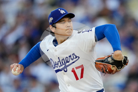 Los Angeles Dodgers pitcher Shohei Ohtani plays against the Milwaukee Brewers during the first inning in Game 4 of baseball's National League Championship Series, Friday, Oct. 17, 2025, in Los Angeles. (AP Photo/Mark J. Terrill)