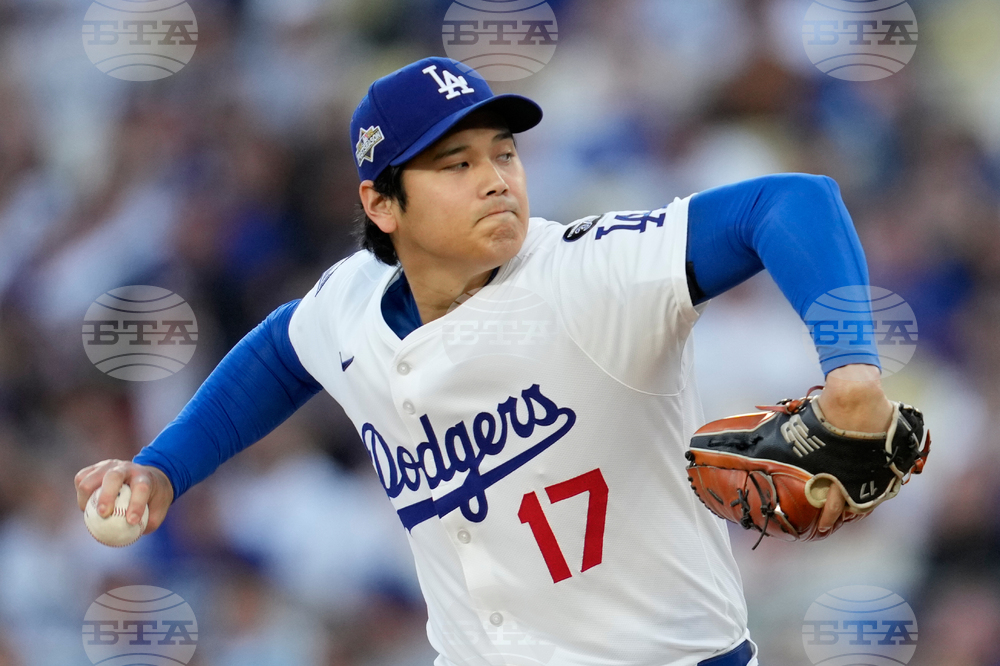 Los Angeles Dodgers pitcher Shohei Ohtani throws against the Milwaukee Brewers during the first inning in Game 4 of baseball's National League Championship Series, Friday, Oct. 17, 2025, in Los Angeles. (AP Photo/Ashley Landis)
