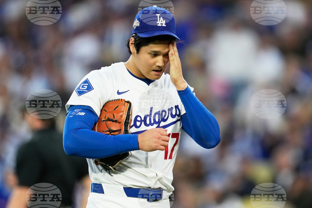 Los Angeles Dodgers pitcher Shohei Ohtani leaves the game against the Milwaukee Brewers during the seventh inning in Game 4 of baseball's National League Championship Series, Friday, Oct. 17, 2025, in Los Angeles. (AP Photo/Brynn Anderson)