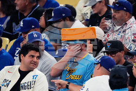 Fans watch during the fifth inning in Game 4 of baseball's National League Championship Series between the Milwaukee Brewers and the Los Angeles Dodgers, Friday, Oct. 17, 2025, in Los Angeles. (AP Photo/Mark J. Terrill)