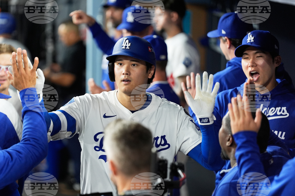 Los Angeles Dodgers' Shohei Ohtani walks to the dugout during the second inning in Game 4 of baseball's National League Championship Series against the Milwaukee Brewers, Friday, Oct. 17, 2025, in Los Angeles. (AP Photo/Ashley Landis)