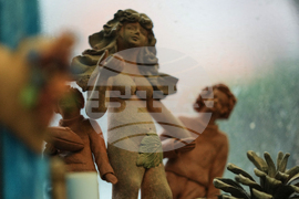 An image of Eve is displayed at the atelier of the Mexican craftsman Cecilio Sanchez in Metepec, Mexico, Thursday, Oct. 9, 2025. (AP Photo/Fernando Llano)