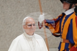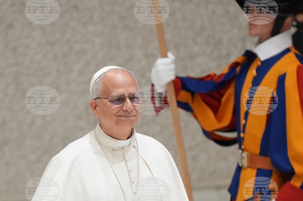 Pope Leo XIV arrives to meet the participants in the Jubilee of the Roma, Sinti, and Travellers in the Paul VI Hall, at the Vatican, Saturday, Oct. 18, 2025. (AP Photo/Andrew Medichini)