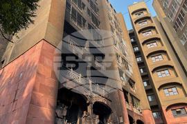 Burnt lower floors are seen after a fire at a residential complex that houses Indian lawmakers, in New Delhi, India, Saturday, Oct.18, 2025. (AP Photo/Shonal Ganguly)