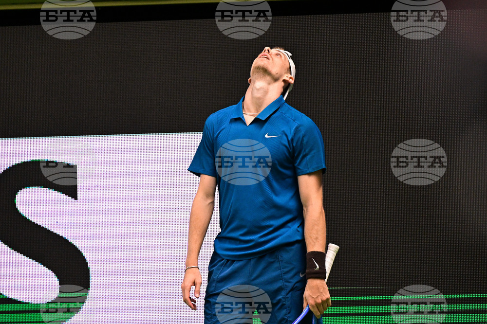 Canada's Denis Shapovalov reacts against during a men's singles semifinal tennis match Norway's Casper Ruud at the BNP Paribas Nordic Open tennis tournament in Stockholm, Sweden, Saturday, Oct. 18, 2025. (Magnus Lejhall/TT via AP)