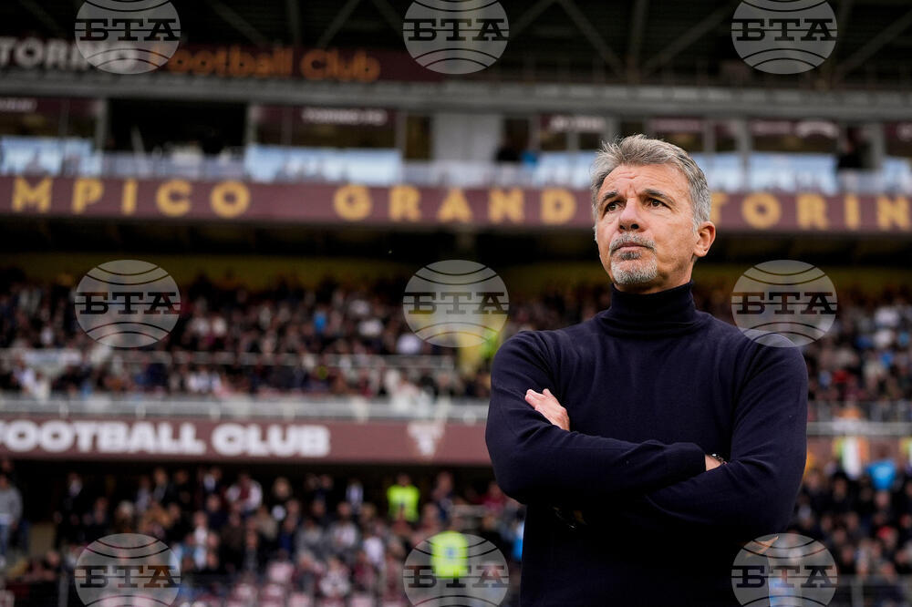 Torino's head coach Marco Baroni watches before a Serie A soccer match between Torino FC and Napoli, Saturday, Oct. 18, 2025, in Turin, Italy. (Fabio Ferrari/LaPresse via AP)
