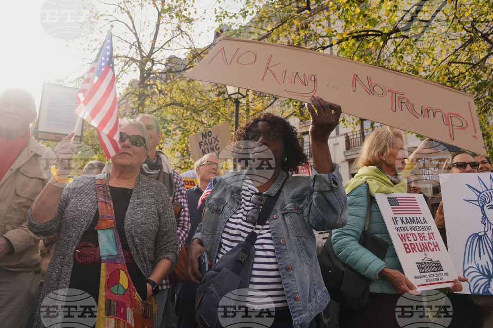 People attend a protest against U.S. President Donald Trump, in Paris, Saturday, Oct. 18, 2025. (AP Photo/Thibault Camus)