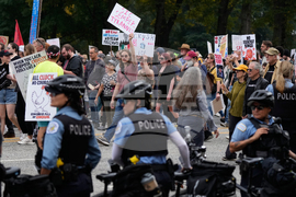 Chicago police watch as people take part in a "No Kings" protest Saturday, Oct. 18, 2025, in Chicago. (AP Photo/Nam Y. Huh)