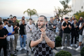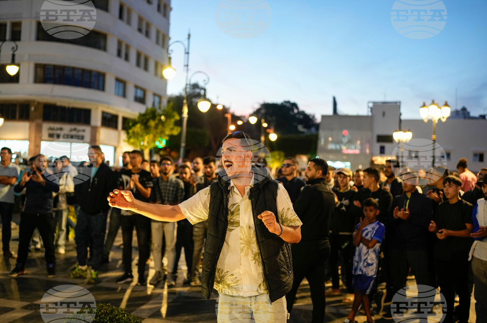 People take part in a youth led protest calling for education and healthcare reforms, in Tangier, Morocco, Saturday, Oct. 18, 2025. (AP Photo/Mosa'ab Elshamy)