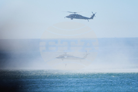 Marines perform a demonstration with helicopters and the amphibious assault ship USS Boxer as Vice President JD Vance, not pictured, watches to mark the upcoming Marine Corps' 250th anniversary Saturday, Oct 18, 2025, on Marine Corps Base Camp Pendleton in Camp Pendleton, Calif. (AP Photo/Gregory Bull)