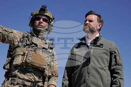 Vice President JD Vance, right, participates in a briefing during an amphibious capabilities demonstration on Red Beach at Camp Pendleton, Calif., Saturday, Oct. 18, 2025, as part of the Marine Corps' 250th anniversary celebrations. (Oliver Contreras/Pool Photo via AP)