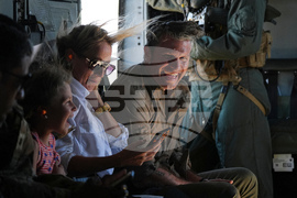 Defense Secretary Pete Hegseth, from right, and his wife Jennifer Rauchet fly in a helicopter during activities to mark the upcoming Marine Corps' 250th anniversary Saturday, Oct 18, 2025, on Marine Corps Base Camp Pendleton in Camp Pendleton, Calif. (AP Photo/Gregory Bull)