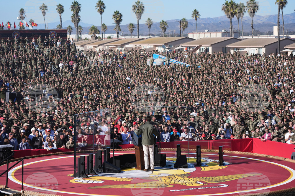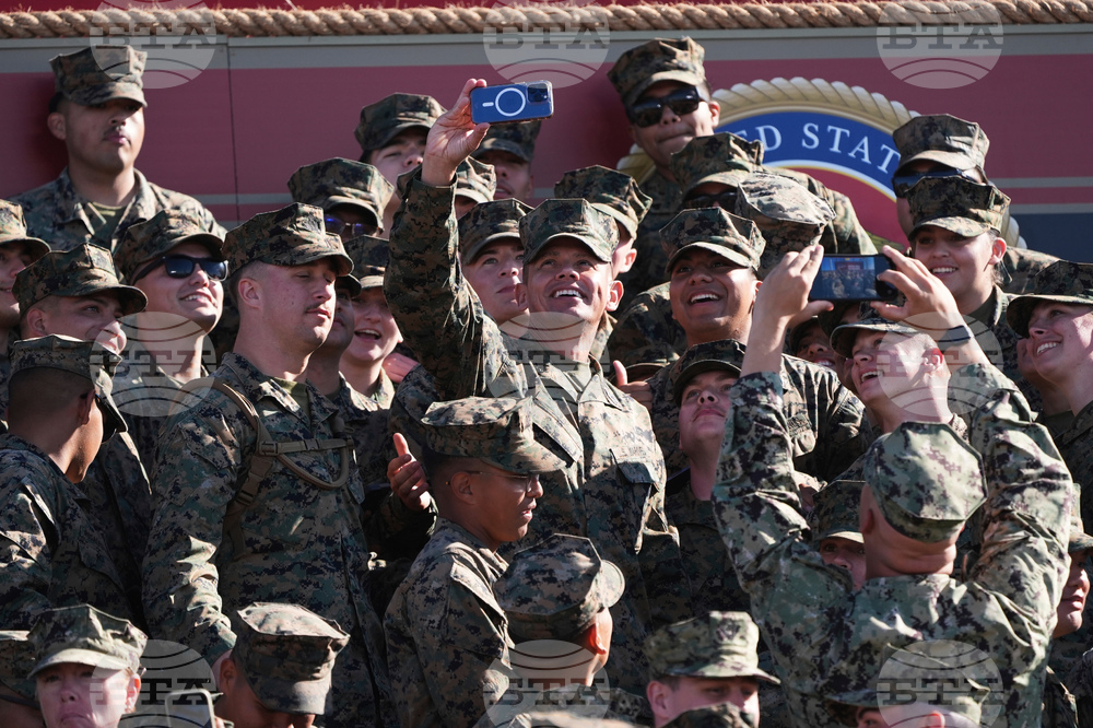 Marines take photos during an event with Vice President JD Vance and Defense Secretary Pete Hegseth to mark the upcoming Marine Corps' 250th anniversary Saturday, Oct 18, 2025, on Marine Corps Base Camp Pendleton in Camp Pendleton, Calif. (AP Photo/Gregory Bull)