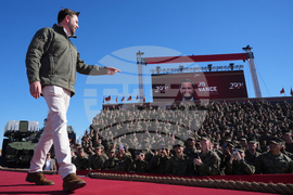 Defense Secretary Pete Hegseth, seated at right, is pictured during a demonstration by Marines to mark the upcoming Marine Corps' 250th anniversary Saturday, Oct 18, 2025, on Marine Corps Base Camp Pendleton in Camp Pendleton, Calif. (AP Photo/Gregory Bull)
