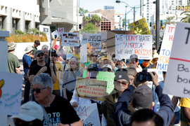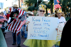 People take part in a "No Kings" protest in Las Vegas on Saturday, Oct. 18, 2025. (AP Photo/Ty ONeil)