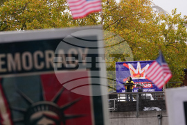 People are signing a giant Constitution as they take part in a "No Kings" protest Saturday, Oct. 18, 2025, in Seattle. (AP Photo/Lindsey Wasson)