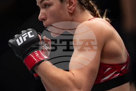 Melissa Croden prepares to fight Tainara Lisboa in a women's bantamweight mixed martial arts bout at a UFC Fight Night in Vancouver, British Columbia, Saturday, Oct. 18, 2025. (Ethan Cairns/The Canadian Press via AP)