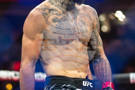 Mike Malott prepares to fight Kevin Holland in a welterweight mixed martial arts bout at a UFC Fight Night in Vancouver, British Columbia, Saturday, Oct. 18, 2025. (Ethan Cairns/The Canadian Press via AP)