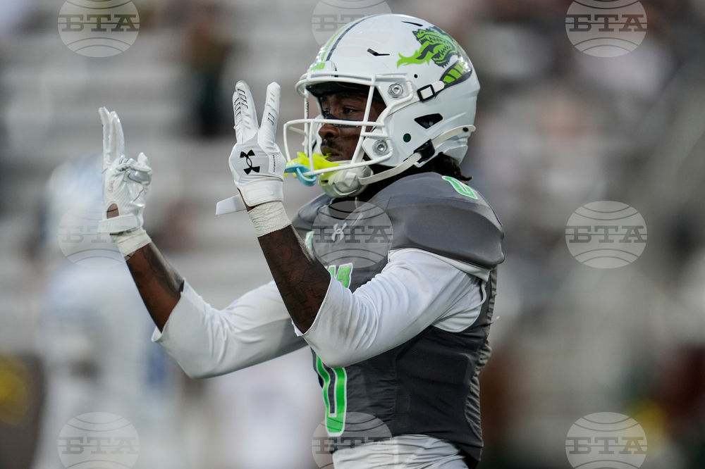 UAB wide receiver Iverson Hooks (0) celebrates his touchdown against Memphis during the first half of an NCAA college football game, Saturday, Oct. 18, 2025, in Birmingham, Ala. (AP Photo/Mike Stewart)