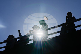 People take photos on the Morrison Bridge during a "No Kings" protest Saturday, Oct. 18, 2025, in Portland, Ore. (AP Photo/Jenny Kane)
