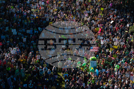 Demonstrators prepare to march during a "No Kings" protest in Portland, Ore., on Saturday, Oct. 18, 2025. (AP Photo/Jenny Kane)