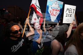 A protester poses for a photo during a "No Kings" protest Saturday, Oct. 18, 2025, in Los Angeles. (AP Photo/Ethan Swope)