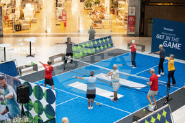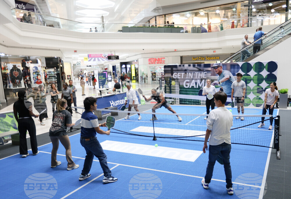 IMAGE DISTRIBUTED FOR HUMANA - Attendees take part in Humana's free pickleball pop-up event, which invited the community to "Get in the Game" and stay healthy and active, on Saturday, Oct. 18, 2025 at Woodfield Mall in Schaumburg, Ill. (John Konstantaras/AP Content Services for Humana)