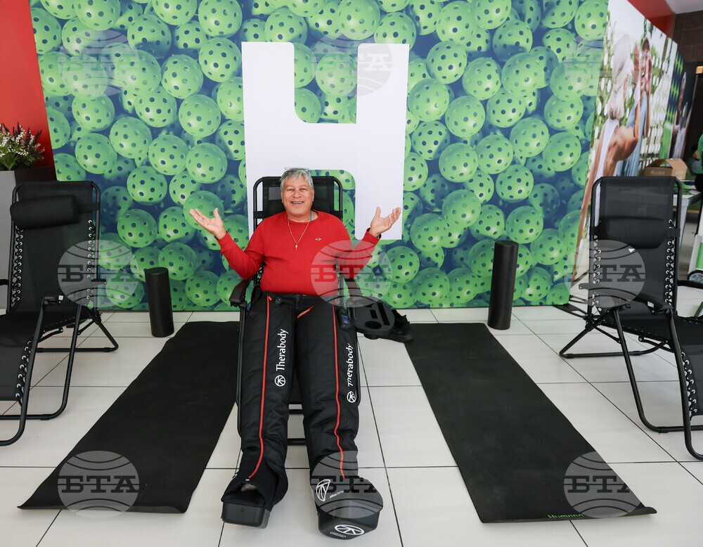 IMAGE DISTRIBUTED FOR HUMANA - Local resident sits in zero gravity chair in the recovery zone during Humana's community pickleball pop-up event, which invited the community to "Get in the Game" and stay healthy and active, on Saturday, Oct. 18, 2025 at Woodfield Mall in Schaumburg, Ill. (John Konstantaras/AP Content Services for Humana)