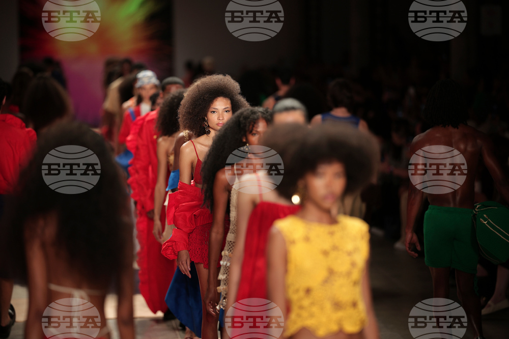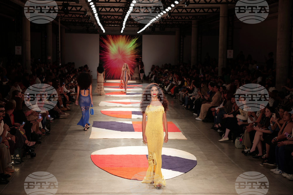 Models wear creations from the Atelie Mao de Mae collection during the Sao Paulo Fashion Week, in Sao Paulo, Brazil, Saturday, Oct. 18, 2025. (AP Photo/Ettore Chiereguini)