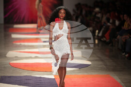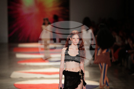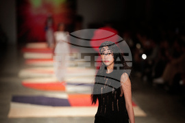 A model wears a creation from the Atelie Mao de Mae collection during Sao Paulo Fashion Week, in Sao Paulo, Brazil, Saturday, Oct. 18, 2025. (AP Photo/Ettore Chiereguini)