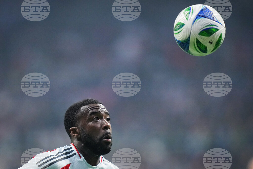 Vancouver Whitecaps' Emmanuel Sabbi protests to the linesman during the second half of an MLS soccer match against FC Dallas in Vancouver, British Columbia, Saturday, Oct. 18, 2025. (Darryl Dyck/The Canadian Press via AP)