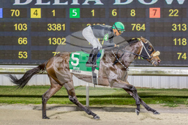 This photo provided by Delta Downs Racetrack shows Jovie G, owned by Kent Gremmels, with jockey Isaac Castillo aboard, competing in the Sweet Home Alabama Special Stakes at the Delta Downs Racetrack on Saturday, Oct. 18, 2025, in Vinton, La. (Paula C Tindall Landen Carrier/Hodges Photography via AP)