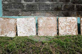 Pallets made from agricultural waste, for use in building house wall and roof insulation, are displayed at the MycoTile facility at the Kenya Industrial Research and Development Institute in Nairobi, Kenya, Thursday, July 24, 2025. (AP Photo/Brian Inganga)
