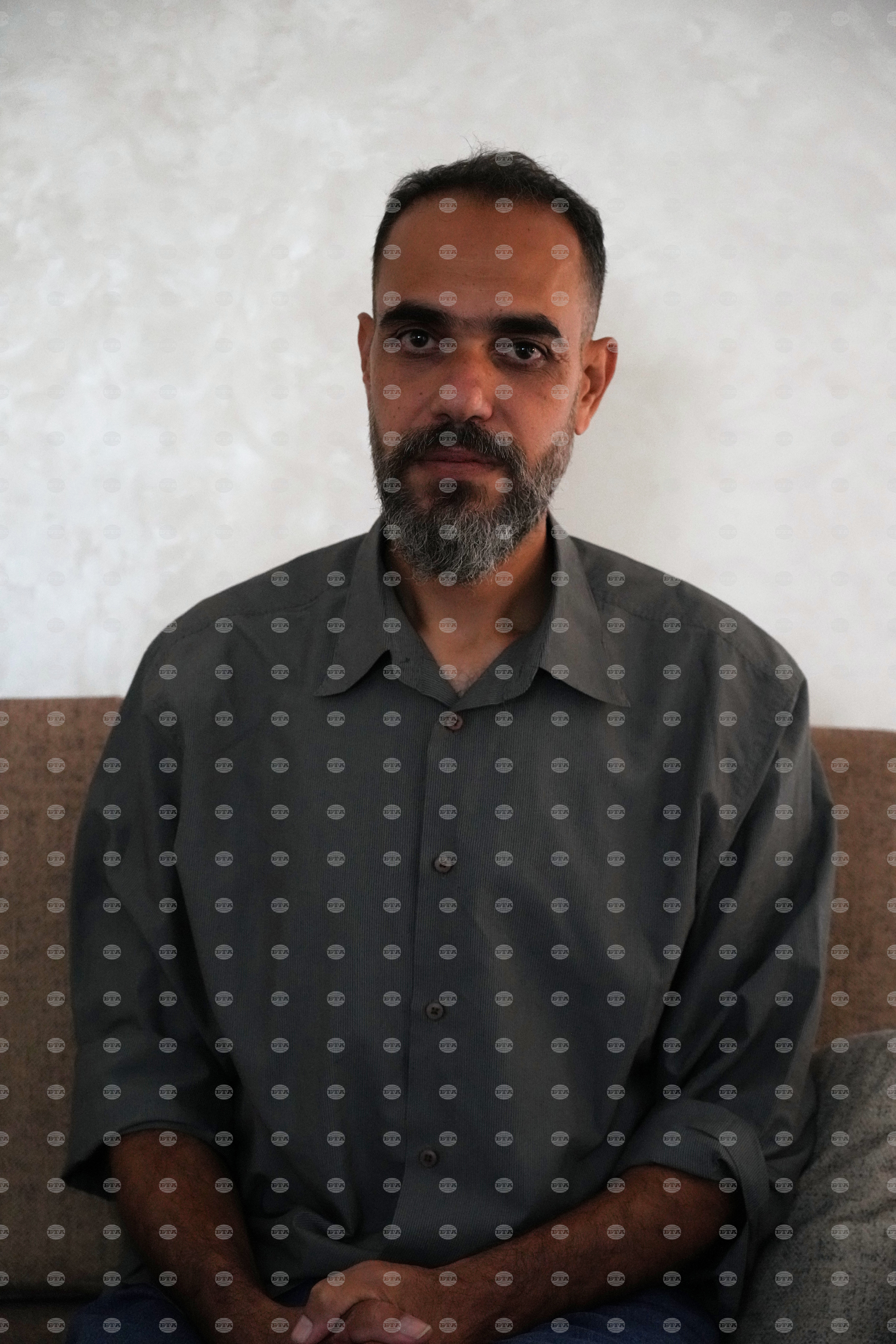 Palestinian medical technician Mohammed Abu Moussa, 45, who was released from Israeli detention after 20 months, poses for a photo in Deir al-Balah, Gaza, Saturday, Oct, 18, 2025. (AP Photo/Abdel Kareem Hana)