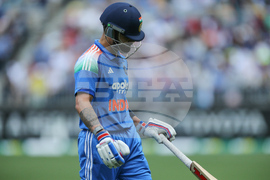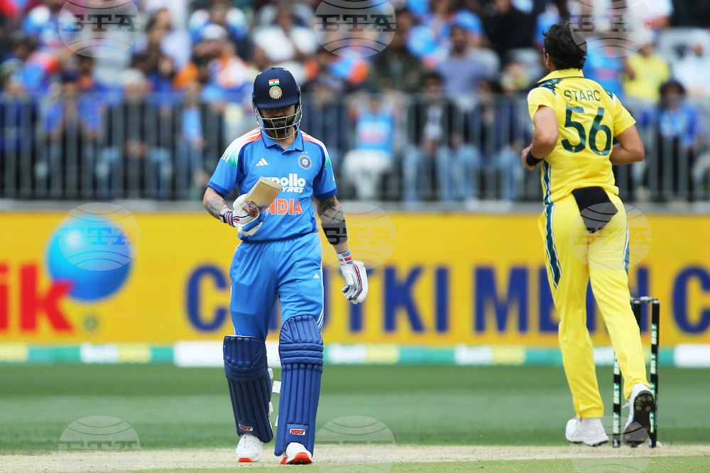 India's Virat Kohli walks off after being dismissed by Australia's Mitchell Starc during the one day international cricket match between Australia and India in Perth Australia, Sunday, Oct. 19, 2025. (David Woodley/AAPImage via AP)