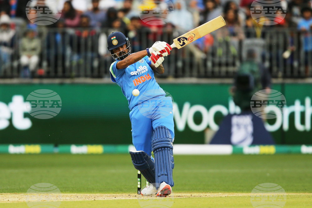 India's KL Rahul bats during the one day international cricket match between Australia and India in Perth Australia, Sunday, Oct. 19, 2025. (David Woodley/AAPImage via AP)