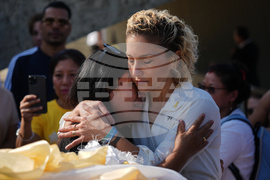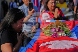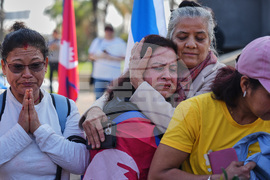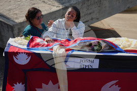 Relatives of Nepali national Bipin Joshi, who was taken hostage by Hamas into Gaza, attend a farewell ceremony before his body is flown to Nepal for burial, at Ben Gurion airport in Lod, Israel, Sunday, Oct. 19, 2025. (AP Photo/Ariel Schalit)