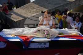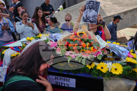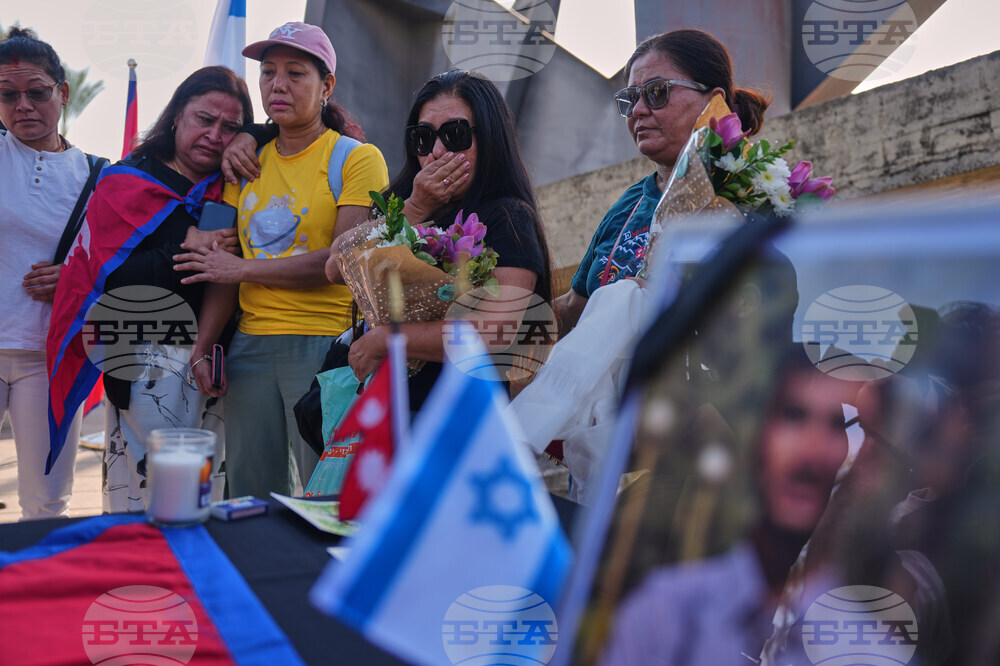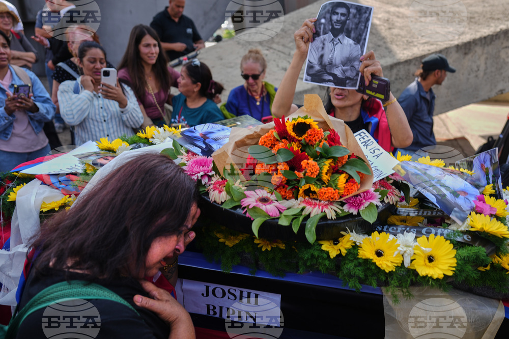 Relatives and friends of Nepali national Bipin Joshi, who was taken hostage by Hamas into Gaza, mourn next to his coffin during a farewell ceremony before his body is flown to Nepal for burial, at Ben Gurion airport in Lod, Israel, Sunday, Oct. 19, 2025. (AP Photo/Ariel Schalit)