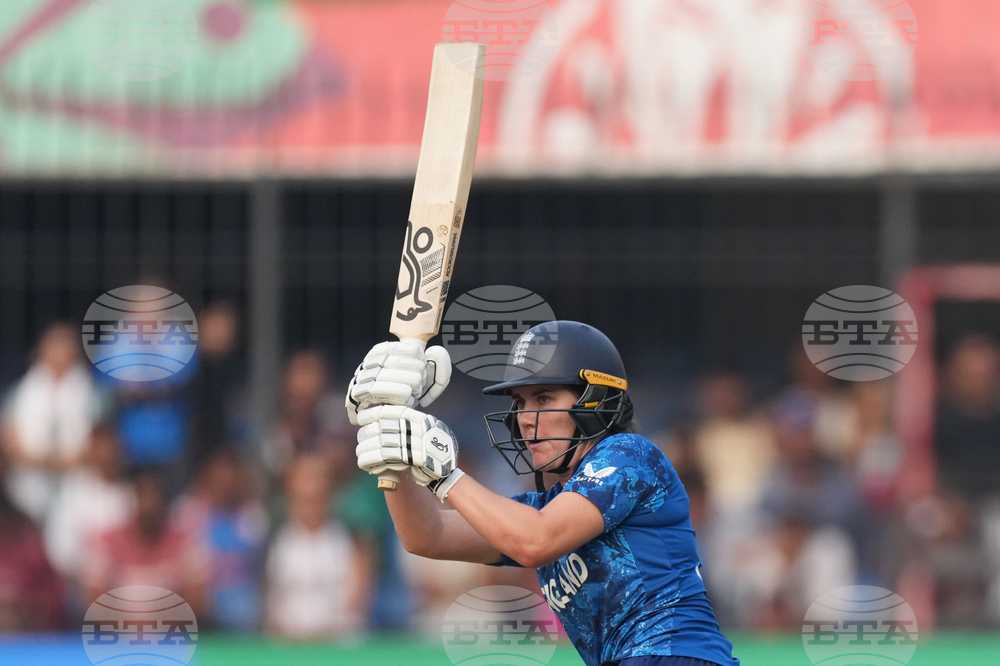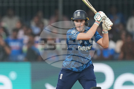 England's captain Nat Sciver-Brunt plays a shot during the ICC Women's Cricket World Cup match between India and England in Indore, India, Sunday, Oct. 19, 2025. (AP Photo/Ajit Solanki)