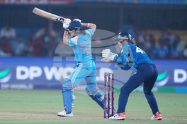 England's Amy Jones plays a shot during the ICC Women's Cricket World Cup match between India and England in Indore, India, Sunday, Oct. 19, 2025. (AP Photo/Ajit Solanki)