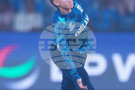England's Charlotte Dean bowls a delivery during the ICC Women's Cricket World Cup match between India and England in Indore, India, Sunday, Oct. 19, 2025. (AP Photo/Ajit Solanki)