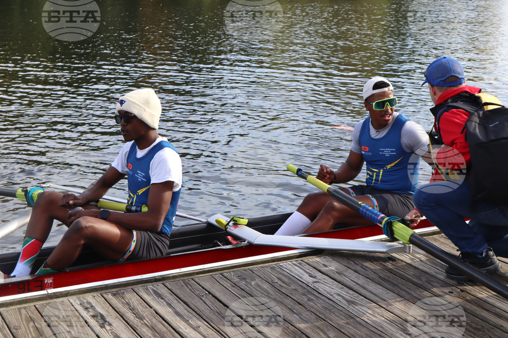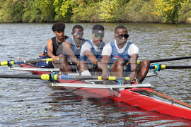 South African rowers, from left, Sheldon Krishnasamy, Lwazi-Tsebo Zwane, Lebone Mokheseng, and Sepitle Leshilo practice on the Charles River in preparation for the Head of the Charles Regatta, Wednesday, Oct. 15, 2025, in Boston. (AP Photo/Rodrique Ngowi)
