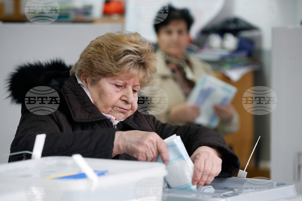 People cast their ballots in the first round of the local elections, at a polling station in Skopje, North Macedonia, on Sunday, Oct. 19, 2025. (AP Photo/Boris Grdanoski)