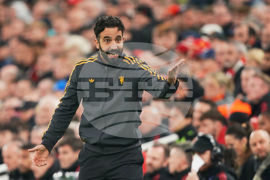 Liverpool's manager Arne Slot gives instructions from the side line during the English Premier League soccer match between Liverpool and Manchester United in Liverpool, England, Sunday, Oct. 19, 2025. (AP Photo/Ian Hodgson)